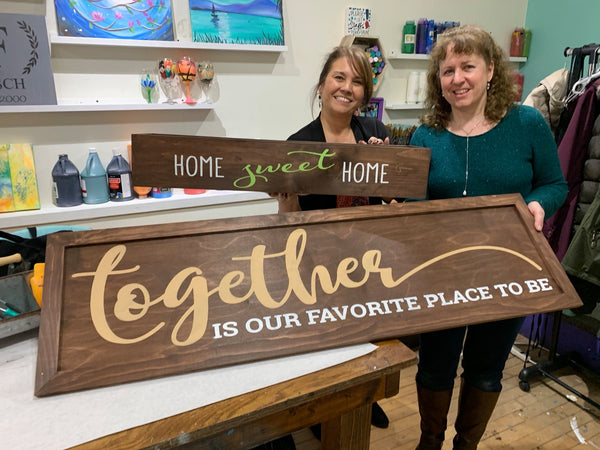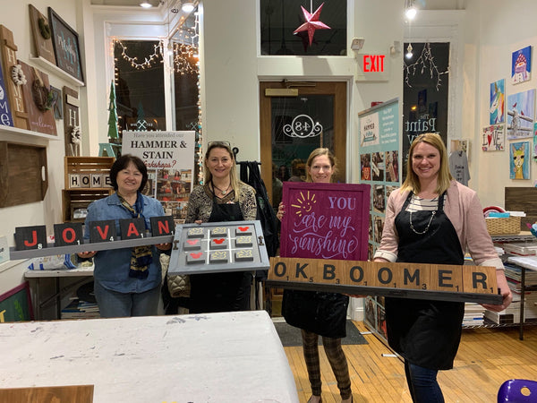 The instructor will guide you through the process, from start to finish. We will also help you with the selection of stain and paint color options. If you get lost, written instructions are provided at the center of each table as well as on the wall. We will be hands-on throughout the entire workshop, but if at any time you have questions or need help, please let us know! We are there to HELP YOU!!